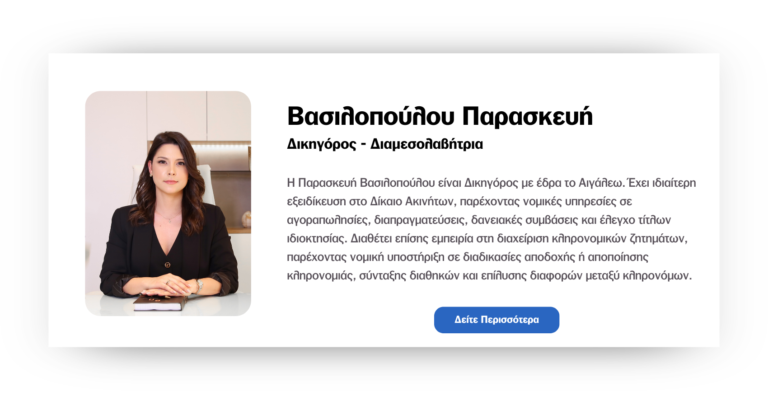 Συνοψίζοντας, η αγορά ακινήτου αποτελεί μια πολυεπίπεδη διαδικασία όπου η νομική ασφάλεια υπερτερεί της εμπορικής συμφωνίας. Η προσεκτική εξέταση των τίτλων, η πολεοδομική συμμόρφωση, η φορολογική τάξη, η ισχυρή συμβατική δέσμευση μέσω προσυμφώνου και ο έλεγχος των δασικών ή ενεργειακών περιορισμών αποτελούν τα πέντε πυλώνες μιας επιτυχημένης συναλλαγής. Ο υποψήφιος αγοραστής οφείλει να μην αντιμετωπίζει αυτά τα σημεία ως γραφειοκρατικά εμπόδια, αλλά ως τα απαραίτητα εργαλεία που καθιστούν την αγορά ακινήτου μια χωρίς προβλήματα διαδικασία. Μάλιστα, η Δικηγόρος στο Αιγάλεω Παρασκευή Βασιλοπούλου φροντίζει ώστε η όλη διαδικασία να είναι όσο το δυνατόν πιο απρόσκοπτη και φυσικά να στεφθεί από επιτυχία.